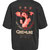 schwarzes Shirt mit shiny roter Schrift auf der Brust, 100% Baumwolle (davon 50% BioBaumwolle), oversized geschnitten