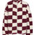 sehr groß geschnittener Cardigan in Windsor wine mit Yin Yang Zeichen in schwarz/weiß, durchgehend geknöpft, V-Ausschnitt, 52% Viskose, 28% Polyester, 20% Nylon