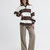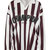 gestreiftes Fußballtrikot, weiter Polokragen, überschnittene lange Ärmel, Print auf der Brust, oversize Fit, 100% Polyester, das Model trägt Größe M