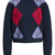 Strickpullover in marineblau und rot/lila gemustertem Karos, Rundhals, 84% recyceltes Polyester, 6% Acryl, 6% Polyamid, 4% Wolle